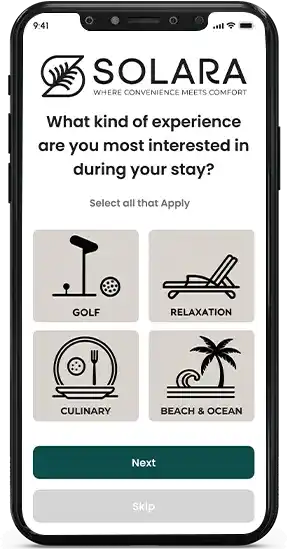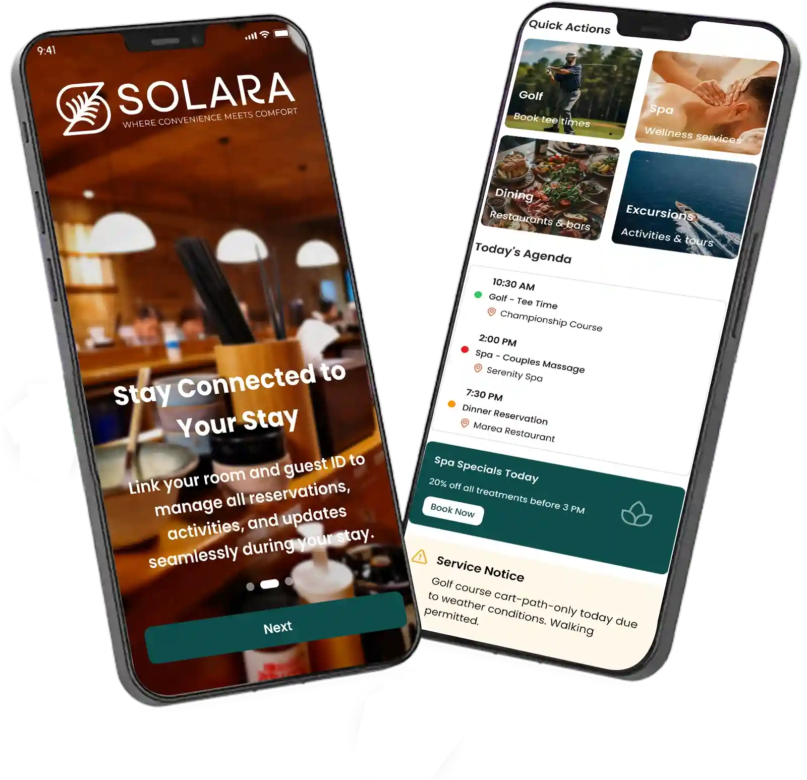 Solara was created to transform the way guests experience resort living. We bring every service—spa treatments, dining reservations, golf bookings, excursions, and room management—into one seamless, intuitive platform. Our mission is simple: to remove daily hassles, save time, and help guests enjoy more of what truly matters.