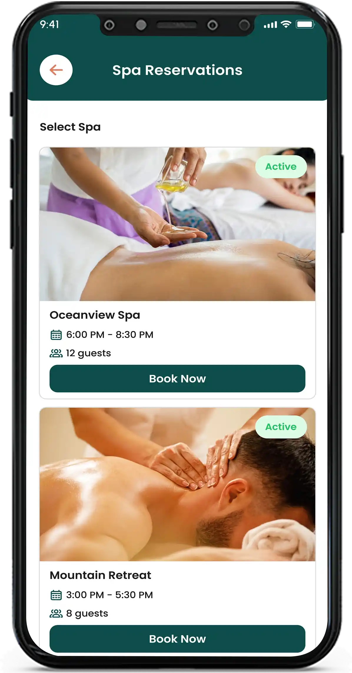 Reserve spa services, dinner tables, tee times, excursions, or activities with real-time availability.